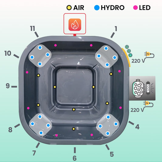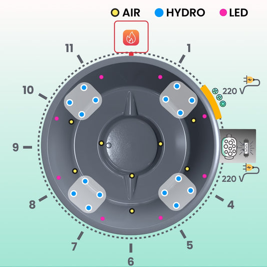 Premium Filteranlage für Hot Tub mit externem AISI 316 Edelstahl-Ofen | 24 Hydrodüsen | Für 4–8 Personen