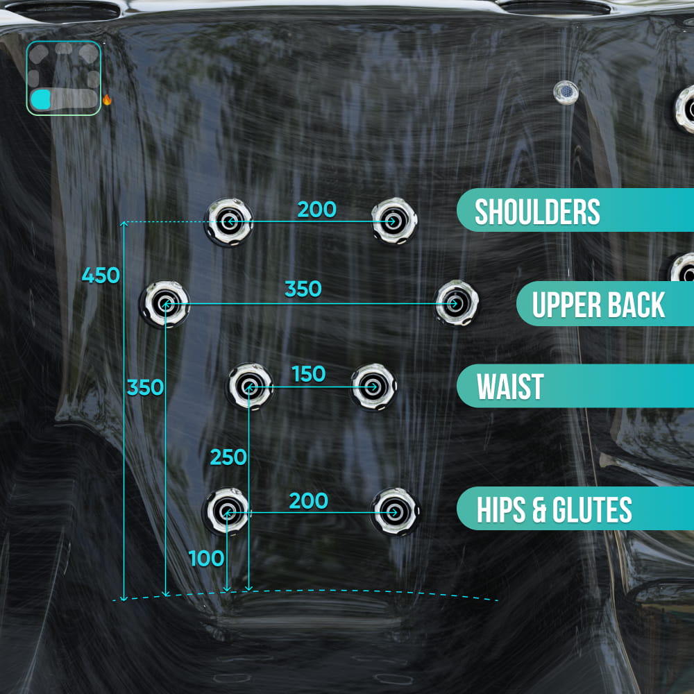 - Air jet massage system, 8 jets, 0.7 kW (£ 330)