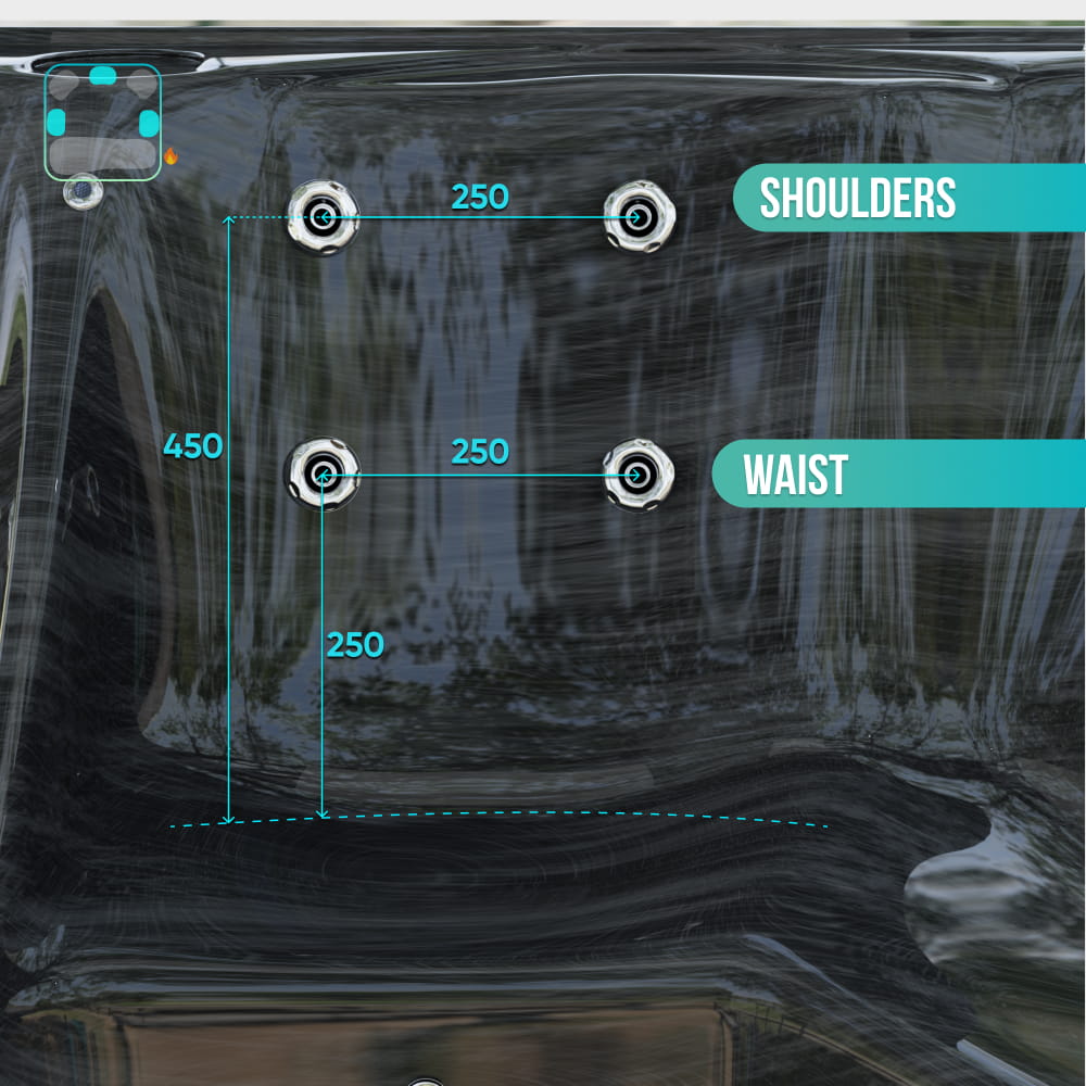 - 6-seater (5 seats and 1 laying position) hot tub with insert made of acrylic (marble black color) (£ 3900)