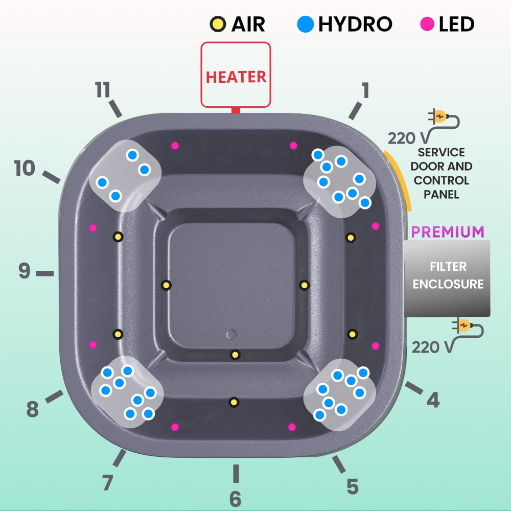 This Hot Tub is equipped with strategically positioned hydro massage jets, designed to work with your body.