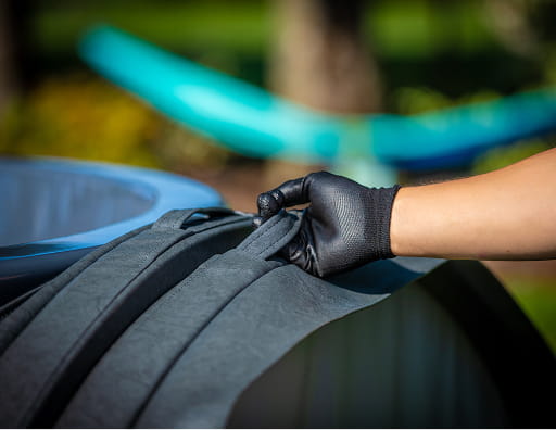 Bei Hot Tubs mit einem Durchmesser von bis zu 2 Metern kann die isolierte Abdeckung in der Regel von einer Person entfernt und wieder aufgesetzt werden. Das klappbare Design und verstärkte Griffe erleichtern die Handhabung.