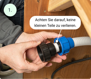 Sobald die Befestigungen an ihrem Platz sind, schrauben Sie einfach den Schlauch an den Filter, um ihn mit dem Hot Tub zu verbinden.Achten Sie darauf, keine kleinen Teile zu verlieren.