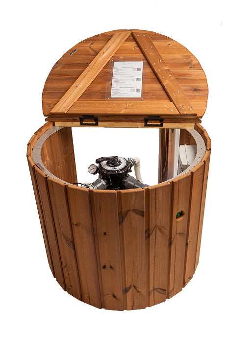 Runde Filterbox — unser neuestes Design, das an die traditionelle, abgerundete Form des Hot Tubs erinnert. Wird von oben geöffnet, und dank des durchdachten und klaren Aufbaus sind alle Komponenten leicht zugänglich.