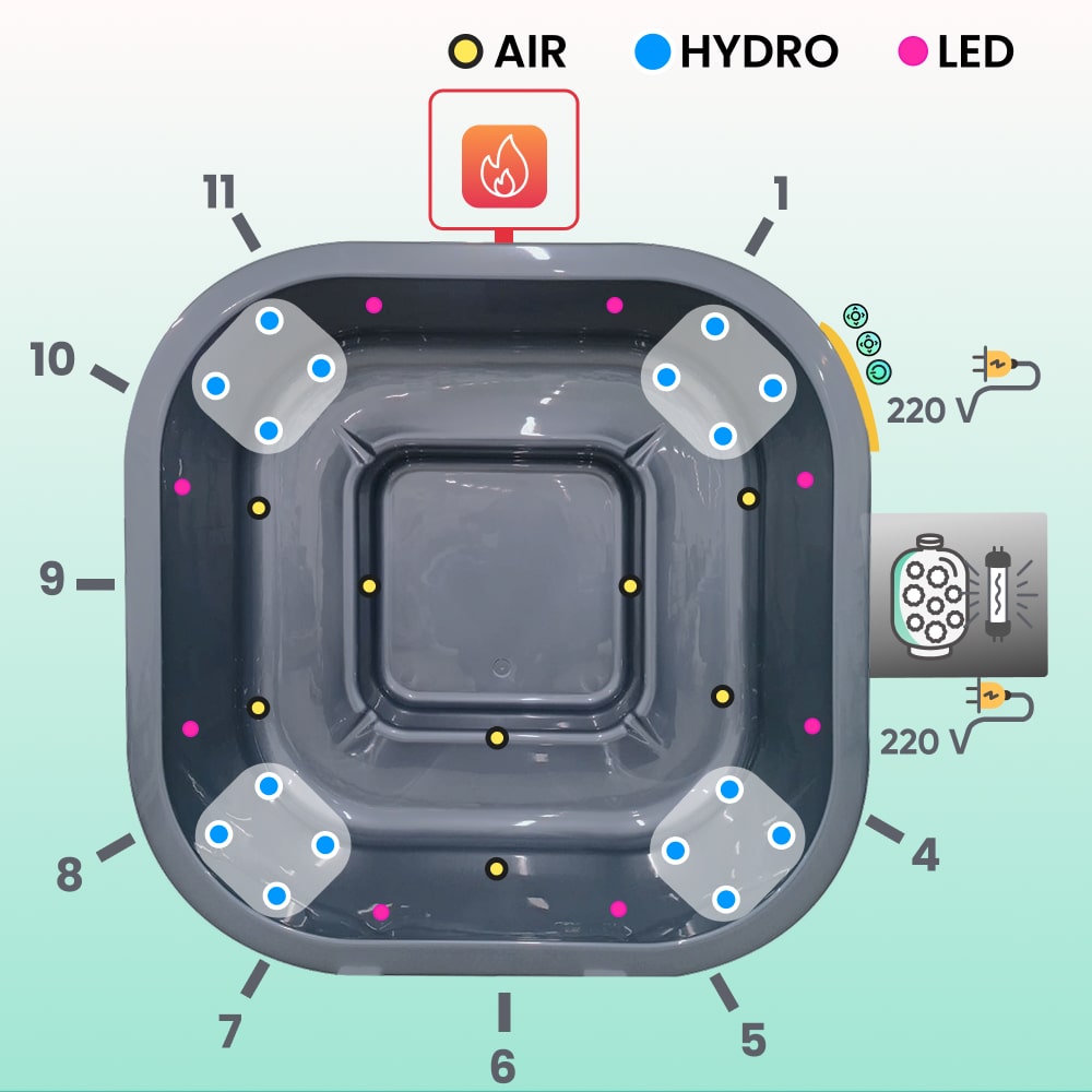 8 Luftdüsen & 8 mehrfarbige Mini-Unterwasser-LEDs