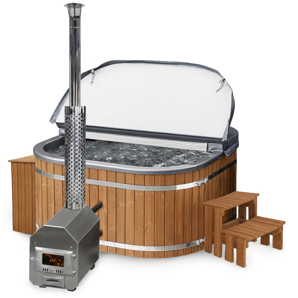 Quadratischer Hot Tub für 4–6 Personen mit integriertem Ofen