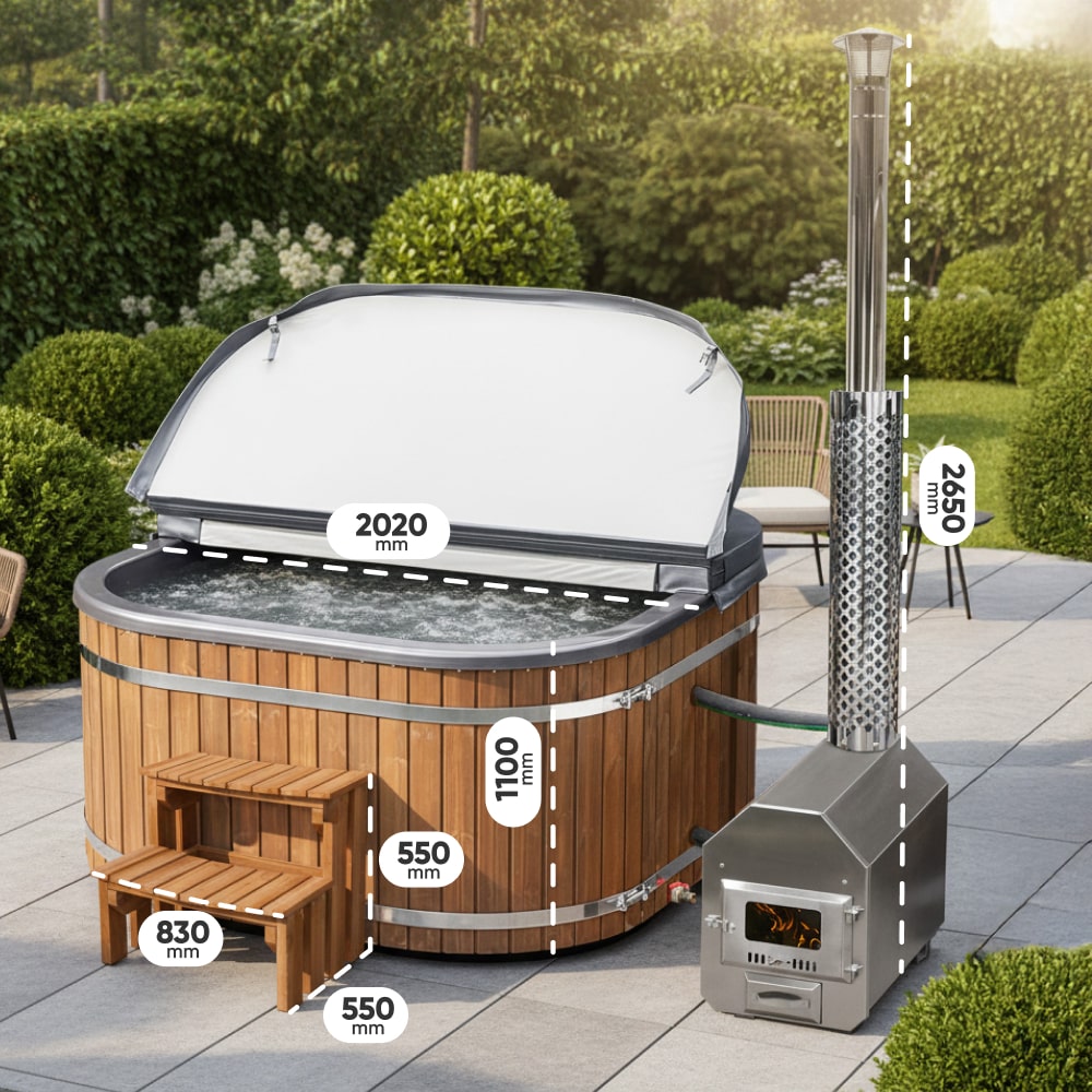 Konfigurierbar Whirlpool mit Holzofen Eckig für 6-8 Personen | Externe Ofen