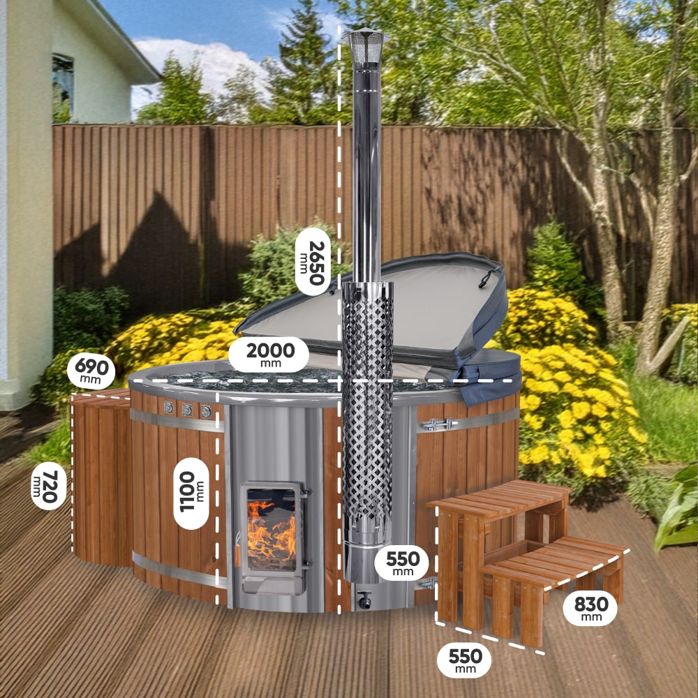 - Integrierter Holzofen aus Edelstahl AISI 316, mit Schornstein 2 Meter (900€)
