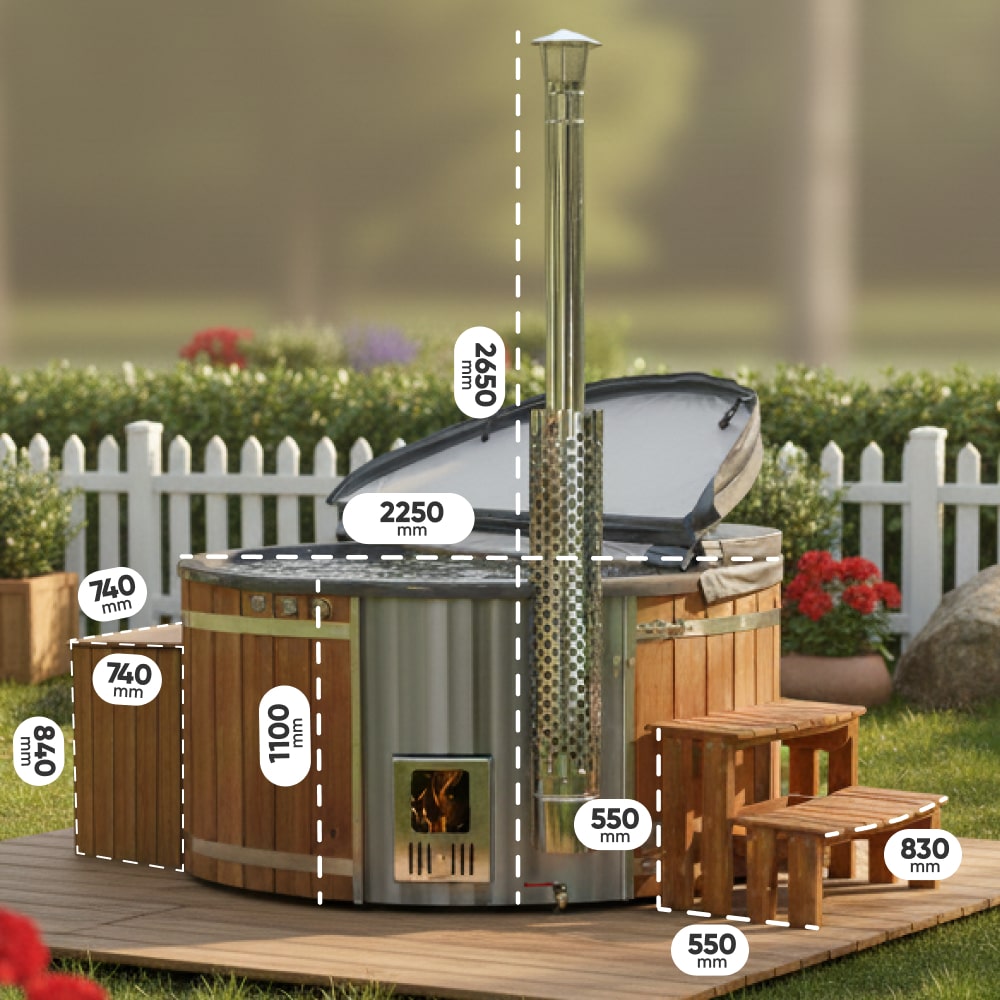 Hot Tub mit Verta™ Holzofen | Filteranlage mit Sandfilter & UV-C Lampe | 16 Hydrodüsen | Für 4–6 Personen