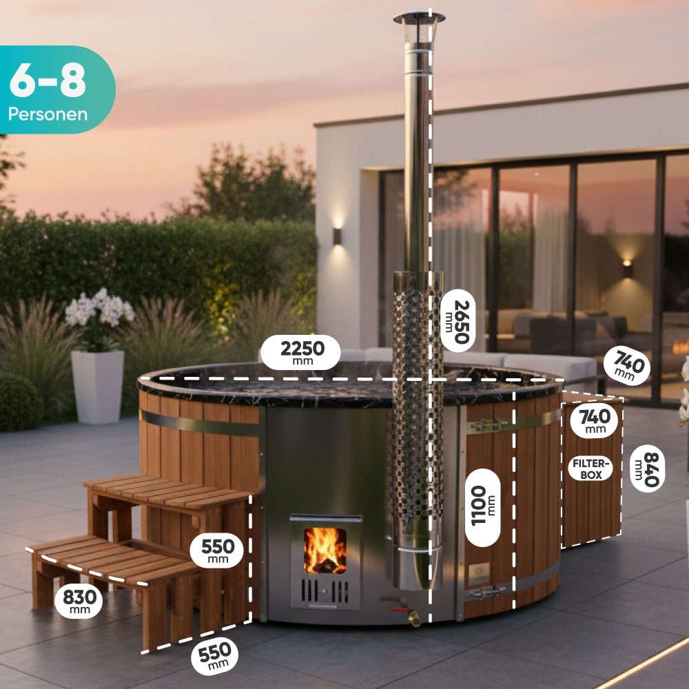 Konfigurierbar Whirpool mit Holzofen Eckig für 6-8 Personen | Externe Ofen