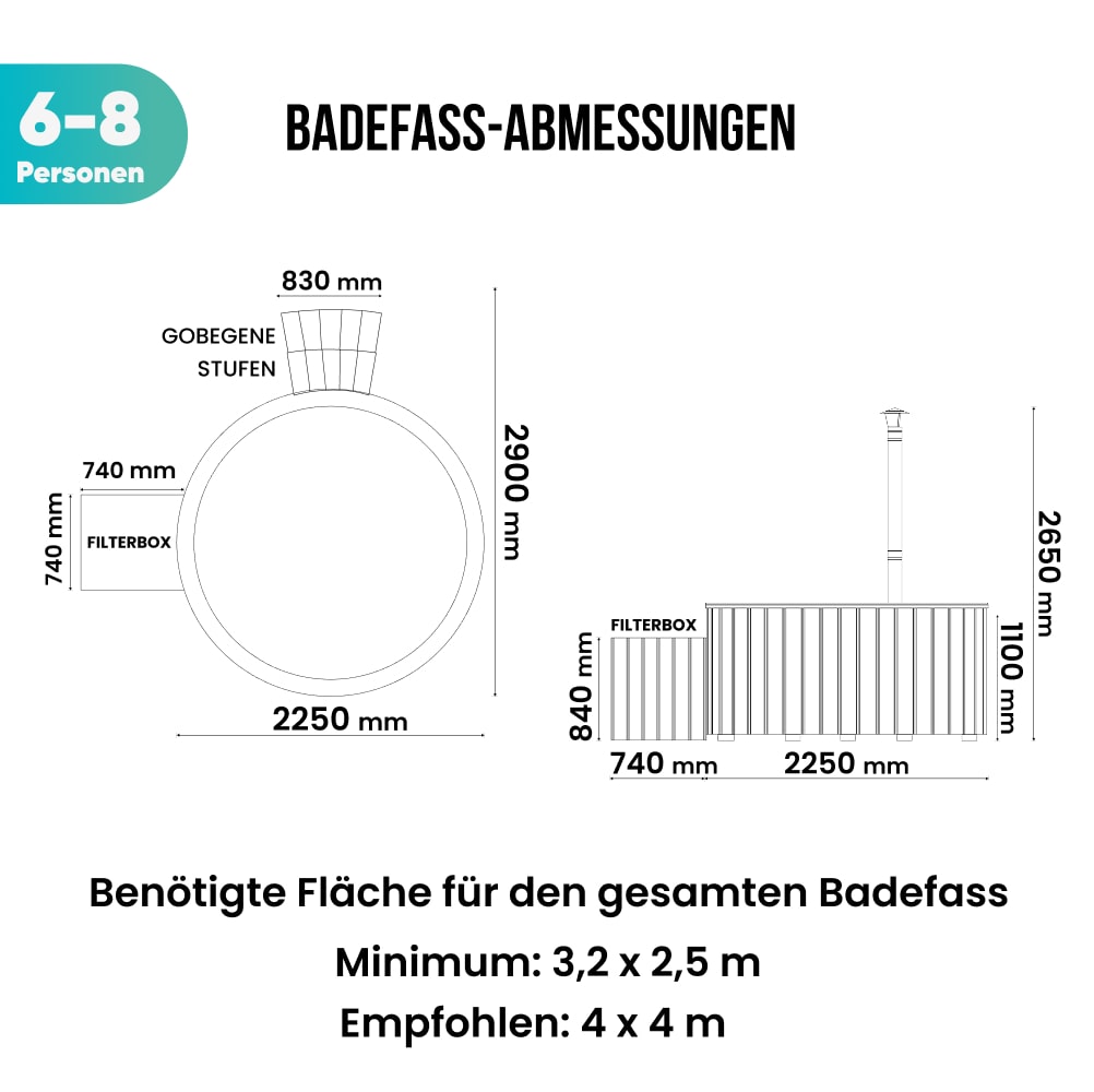 Whirlpool mit externem Holzofen | Filteranlage mit Sandfilter & UV-C Lampe | 16 Hydrodüsen | Für 4–8 Personen
