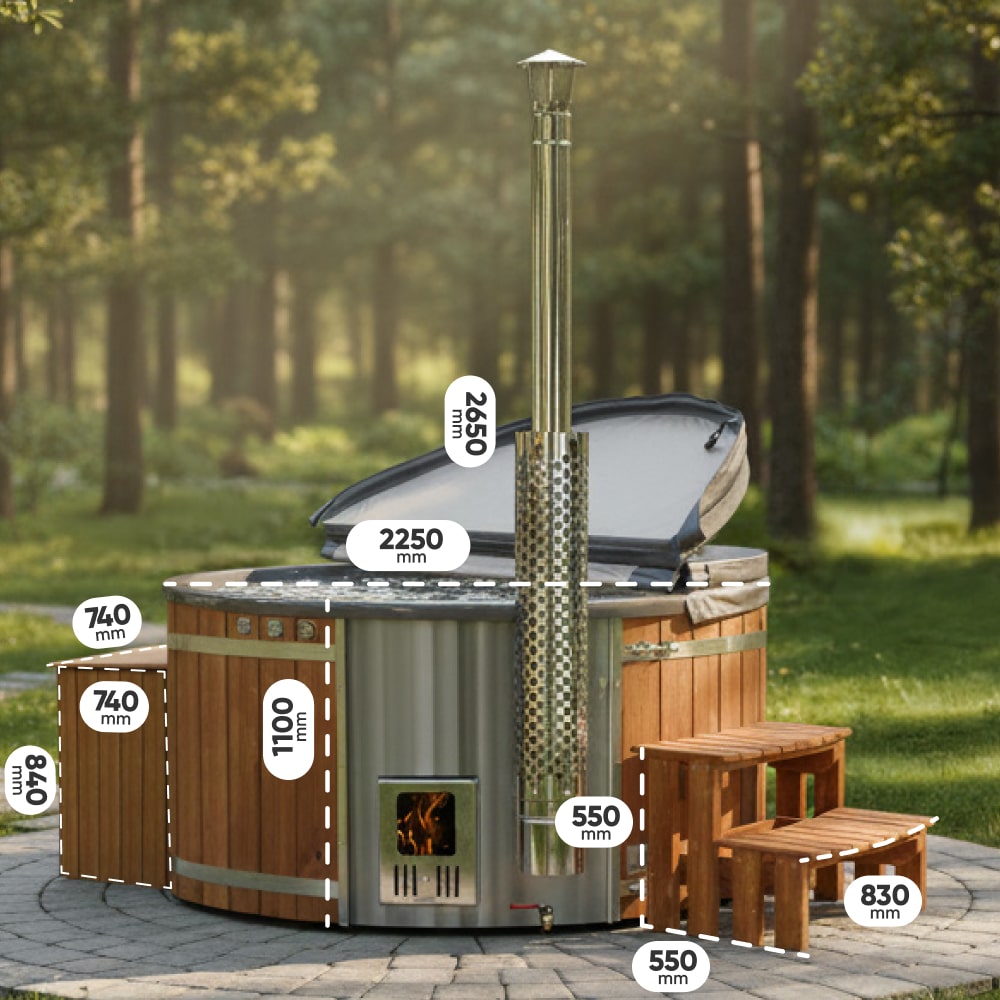 Hot Tub mit Horizon™ Holzofen | Filteranlage mit Sandfilter & UV-C Lampe | 16 Hydrodüsen | Für 4–8 Personen