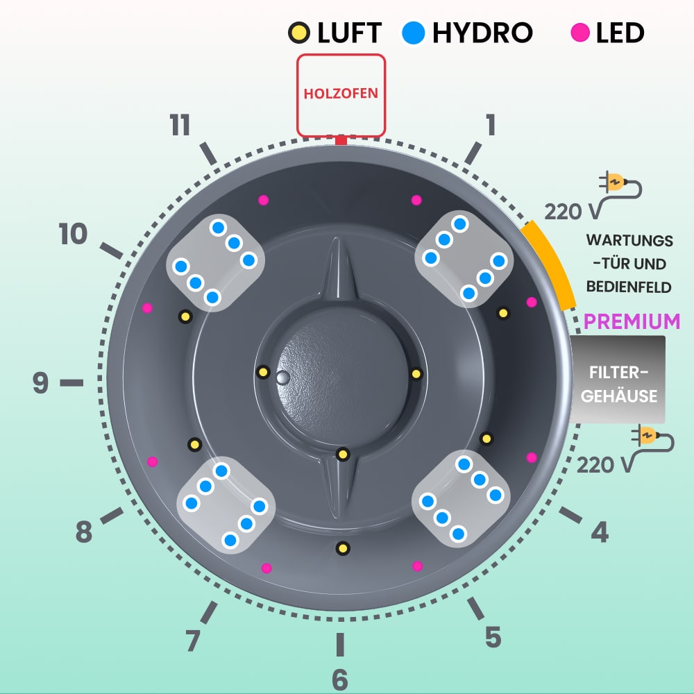 Premium Filteranlage für Hot Tub mit externem AISI 316 Edelstahl-Ofen | 24 Hydrodüsen | Für 4–8 Personen