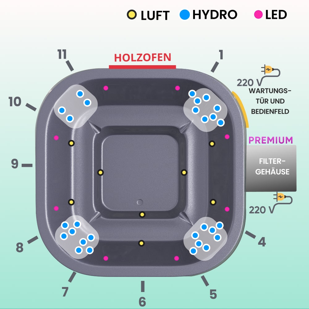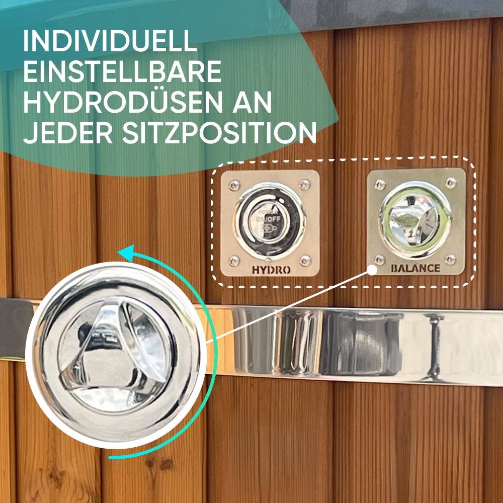 Whirlpool mit Holzofen – 28 Hydro-Jets, Innenofen Horizon | Für 4-8 Personen