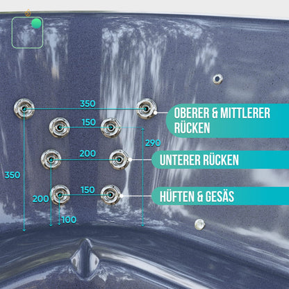 - Luftdüsen-Massagesystem, 8 Düsen, 0,7 kW (330€)